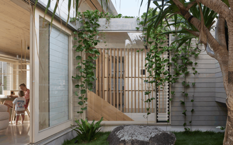 Natural ventilation and thermal mass are the primary cooling strategies, while CLT panels and thoughtful design reduce the home’s environmental footprint. Lyrebird House embodies a balance of comfort, sustainability, and a strong connection to the coastal landscape.